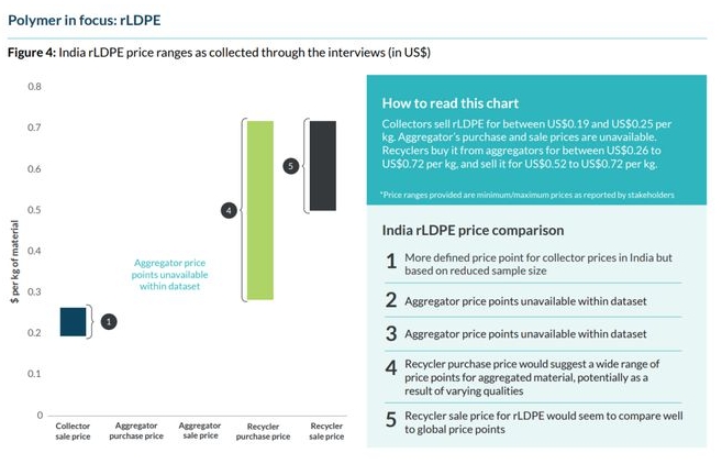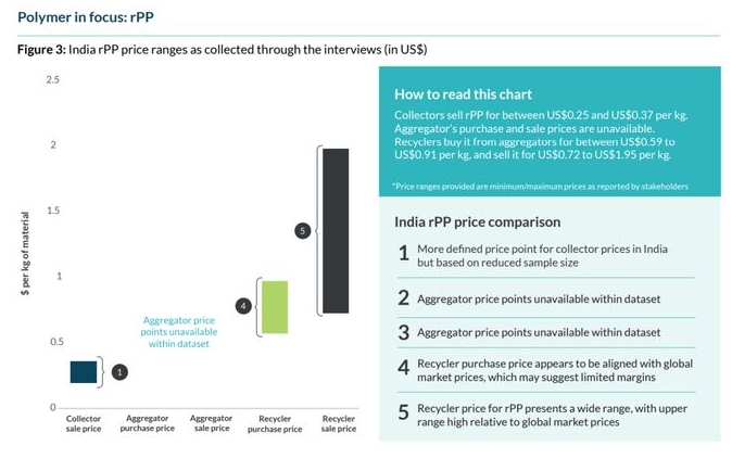 以上圖表是印度再生塑料供應(yīng)鏈的價格,報告中還包含印度尼西亞、泰國和越南的數(shù)據(jù)價格及分析。